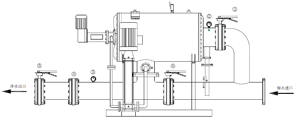 4、過濾機進出水口之間應(yīng)設(shè)置旁通閥,以備系統(tǒng)故障或檢修時使用。