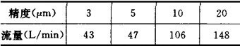 過濾精度對Y型過濾器所通過流量的影響是相當大的,同一型號的過濾器當其選用不同精度濾芯時,其通過流量也不同。由于受濾材結構、濾芯制作工藝等因素的影響,精度與流量之間沒有固定的比例變化關系,但一般來說,過濾精度越高,其通過的流量越小。表1所示為某廠一標準型號產品,當其精度變化時流量變化的數(shù)據(jù)。從表中可以看出精度變化對流量的影響是非常大的,這也是高精度Y型過濾器經常發(fā)生流量不夠的主要原因。