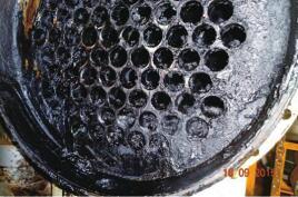 WZ6-12-A2井和WZ6-12-A8井地面生產(chǎn)管匯上加裝過(guò)濾器前,通球清管作業(yè)過(guò)程中從海管清出泥砂約45kg,加裝新型籃式過(guò)濾器后,通球清管作業(yè)清出泥砂量少于10kg。對(duì)三相分離器和沉砂儲(chǔ)集罐開(kāi)罐檢查過(guò)程中,發(fā)現(xiàn)三相分離器內(nèi)只沉積了少量油泥和砂,數(shù)量約為往年的1/5,砂儲(chǔ)集罐中收集了約1/3罐(約1.5m3)較潔凈泥砂,未見(jiàn)油污。以前需每10d就對(duì)過(guò)濾器籃附著的纖維棉進(jìn)行拆開(kāi)清洗,而采用新研發(fā)籃式過(guò)濾器,使用3個(gè)月后進(jìn)行開(kāi)蓋檢查,未發(fā)現(xiàn)任何堵塞現(xiàn)象。水力旋流器入口加裝新型籃式過(guò)濾器之前,旋流管的出油孔被油泥堵塞 (圖1),嚴(yán)重影響水力旋流器含油污水處理效果,加裝之后,打開(kāi)油腔端蓋后出油孔較干凈(圖2),且拆洗周期由1個(gè)月改為2個(gè)月。